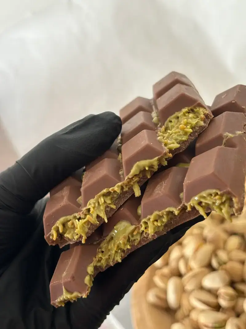 Onze Dubai Chocolade Bar is de belichaming van verfijnde smaak en elegantie, gemaakt met de allerbeste cacao en de meest exquise ingrediënten. Deze chocoladebar biedt een rijke, fluweelzachte textuur en een smaak die je meevoert naar de betoverende wereld van Dubai.